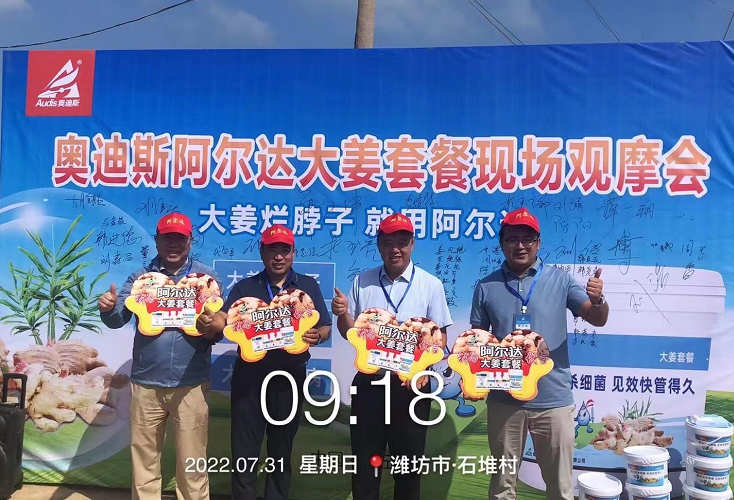 7月31日上午8时许,集团董事长葛尧伦携集团高级顾问胡全胜、董三星抵达潍坊安丘石堆村。在董事长带领下,包括客户、业务经理在内的80多人前往示范地块。8时30分,奥迪斯阿尔达大姜套餐现场观摩会正式开始。炎炎夏日中,董事长走向田间、躬身一线感动了所有在场人员,董事长倡导的“做放心产品,让农户放心”的理论,更是展示了田间初心,赢得了在场人员的由衷敬佩,客户纷纷与董事长合影留念。
